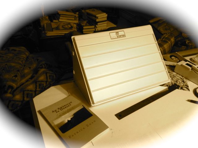 “You must understand, Norman, that I’m lost…totally lost without this particular slide sorter. It was supposed to replace the family heirloom one that my grandfather brought over from Ireland. For generations we sat around and admired the purest and most expensive slide sorter an Irish pound could buy.”