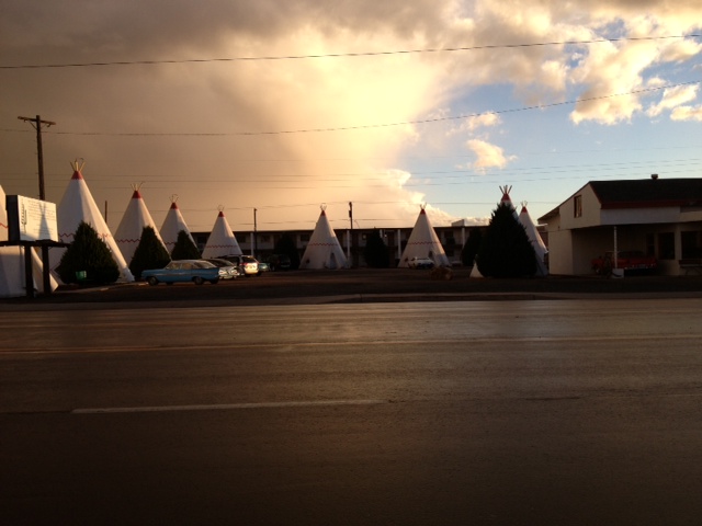 So we did take that right. And in about a mile, there it was. The famous, Wigwam Motel. There were vintage cars parked in front of the units that were actually constructed like wigwams, and you could rent one for the night.