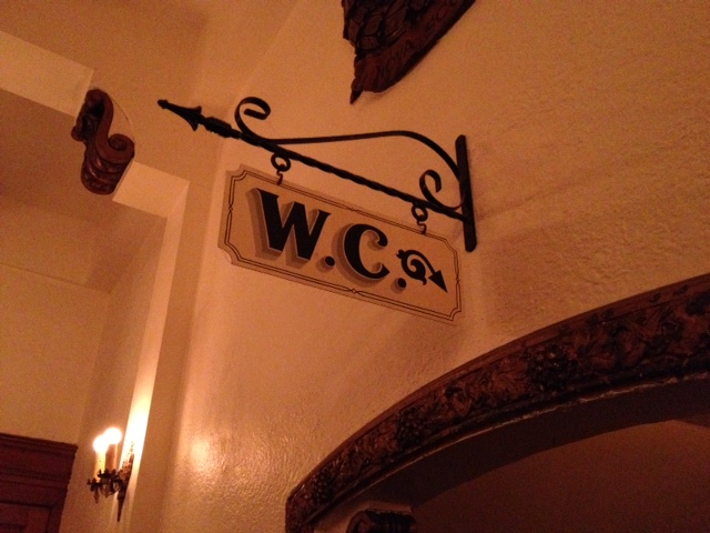 While at the bistro, I did run across a few curious things. Now, I’m not normally a “concrete person”, but I see no need to display an untruth. After getting my coat, I needed to use the loo (notice my use of a Euro term?). There by a staircase that led downstairs (always a bad thing to do in a bar/restaurant) was this sign: