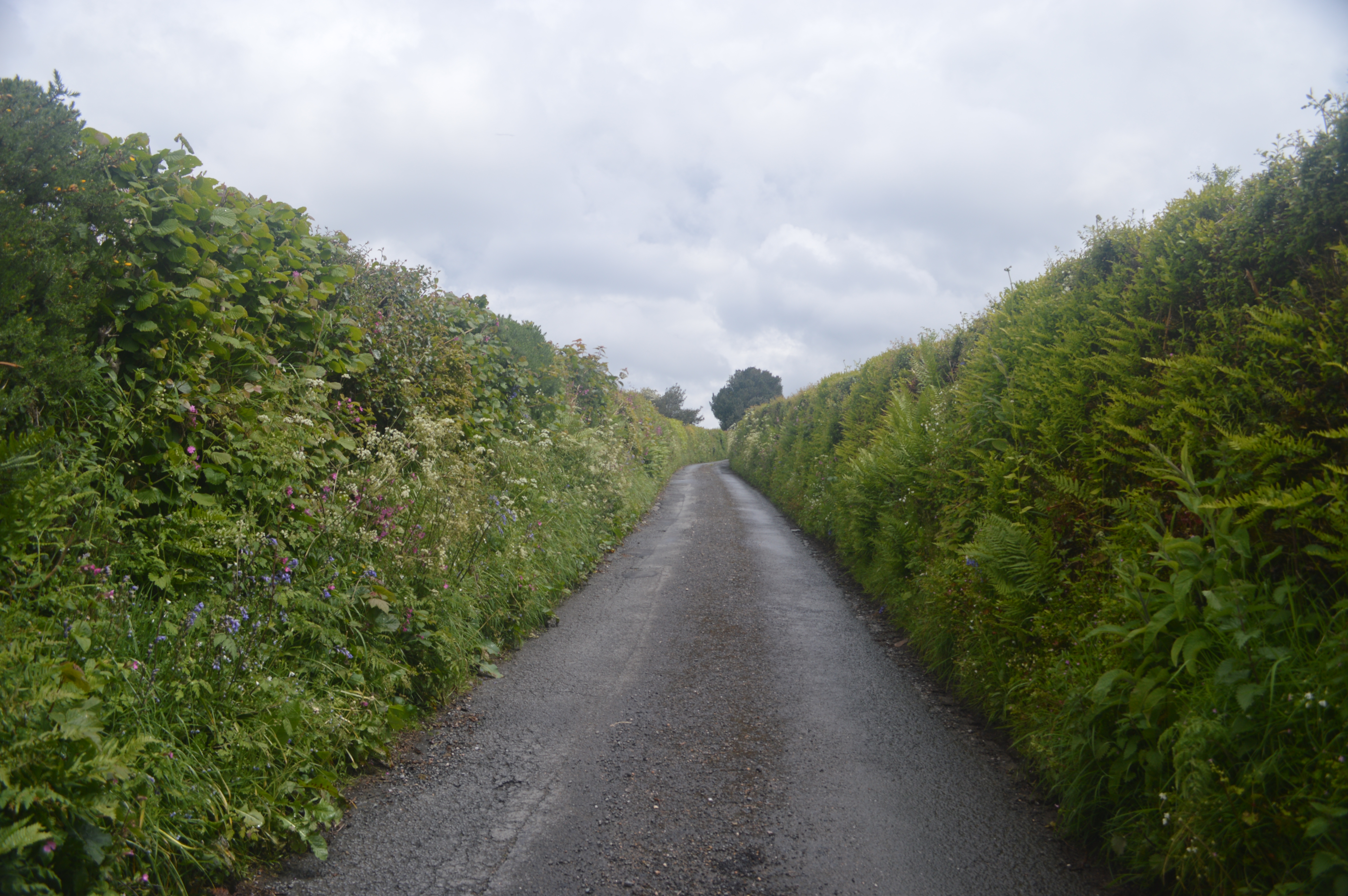 The road, or more accurately, the lane, is wide enough for 1 1/3 car widths. You don’t have to be a German mathematician to see that the numbers don’t work. So, the road builders have put in “lay-bys”. In theory, it works like this: You drive until you see an oncoming vehicle. There should be a pull-over (lay-by) for you to edge over or the other car to edge over. Sometimes, you have to back up a bit. But, somehow, it works (most of the time). And, God help you if you meet an oncoming milk truck… At some point, your mind, your soul begins to separate from your body and you are floating–high above the hedges. You’re looking down at two cars passing each other within the width of a spider’s thread. You cease to care about the cars because you’re nearer to God now and the trip to Paradise is going to be shorter.