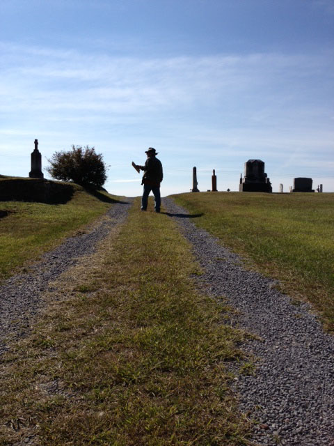 I was in a rather isolated part of the cemetery.  My cell phone went off again.  This time my ringtone kicked on.