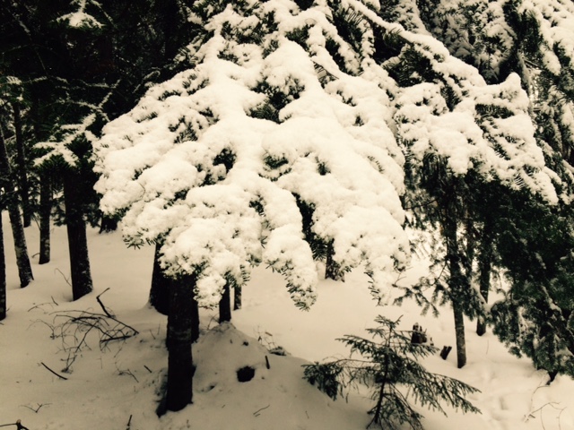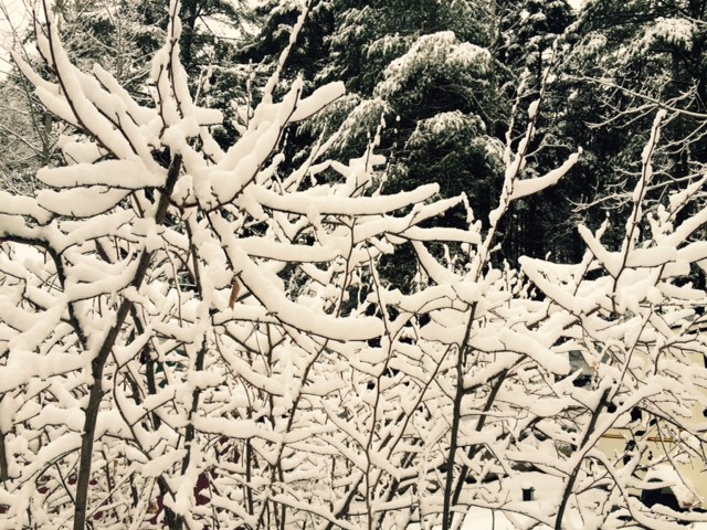 It’s going to be -10 F tonight so the snow will be on the branches in the morning.  But soon a breeze will clear off the tiny cedar needles.  The sun will melt those that remained.