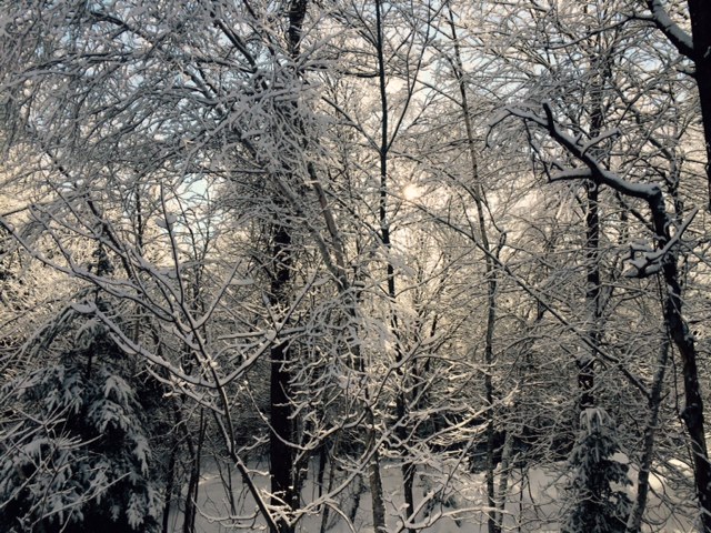 Today, I stood knee-deep in the snow of what passes for our ‘lawn’.  I stepped close to a cedar branch.  I leaned forward to try to count the uncountable crystal flakes.  I got to ten and remembered that no two flakes could ever be exactly the same.  I didn’t want to count any twice so I backed away just as my breath began to melt tiny flecks of white.