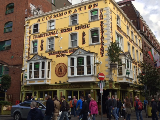 We went a block into the section called Temple Bar. It’s just opposite our hotel. There were more pubs that one could easily count. But the Garda (police), in their yellow vests, vastly out numbered the pubs. It seemed like there had just been an upgrade in the terrorist rating…but it was more to do with the rowdiness of the drinkers than any bombs. One Garda was riding a white horse. I stopped to consider this.