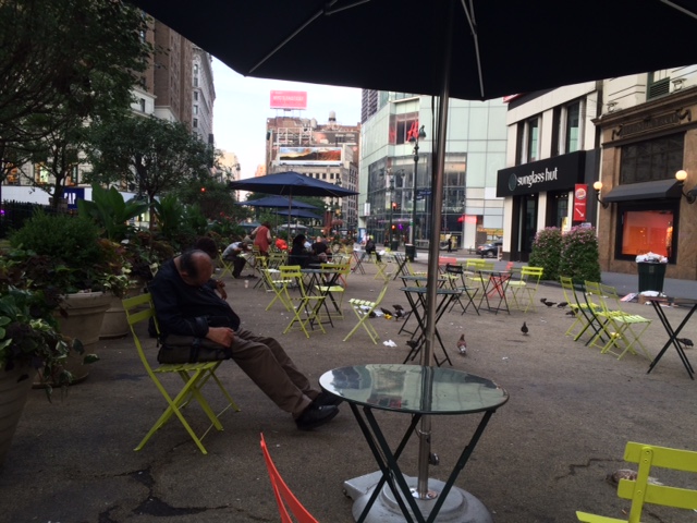 I got dressed. I was going over to Herald Square and find a bench and read (and cough) and not disturb my wife. She was awake, of course, and begged me not to go because she said it was not a safe thing to do. I pulled back the shade and looked down to Broadway. People were moving about. Getting Starbucks. Buying the Times. Going to work.