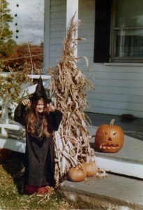 My happiest Halloween’s were when I would take my daughter, Erin (in the mid to late 1970’s) and later, my son, Brian (in the early 1990’s) down those fearful streets. Those were when the sidewalks would be crowded with families and the houses would be lit up with orange light and strange candles and we could see our breath in the chilly air.