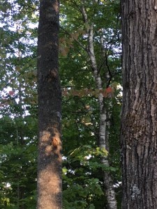 Can you see it? Between the two large trees…behind the birch. I can see it. I first noticed it a few days ago but held-off saying anything about it.