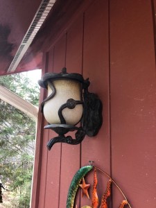 We had a family living above our lamp. Life was about to begin on our front porch. For several weeks we watched as the mother sat as still as a dead parrot in a cage. We began to use the back deck for our commerce, avoiding the disturbance of the slamming screen door. Mariam began to take a special interest in the birds welfare…she watched it from afar like a trained ornithologist…which was great to watch…since she, Mariam not the bird, is from Queens.