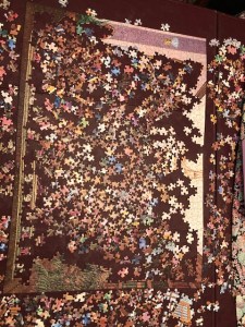 I told Mariam to keep an eye on the Weather Monitor and let me know if the humidity level shows any sign of changing. Returning to the dining room table I put all my brain power and skills of observation on finding the missing piece that would complete the perimeter. It was an edge piece and was snow white. Sounds easy but I just couldn’t manage to find it.