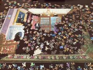 Right now, Doctor, my time is spent attempting to assemble a 1,000 piece jigsaw puzzle. The top photo shows our progress as of April 9. It is, by far, the most detailed and difficult puzzle I’ve ever done.