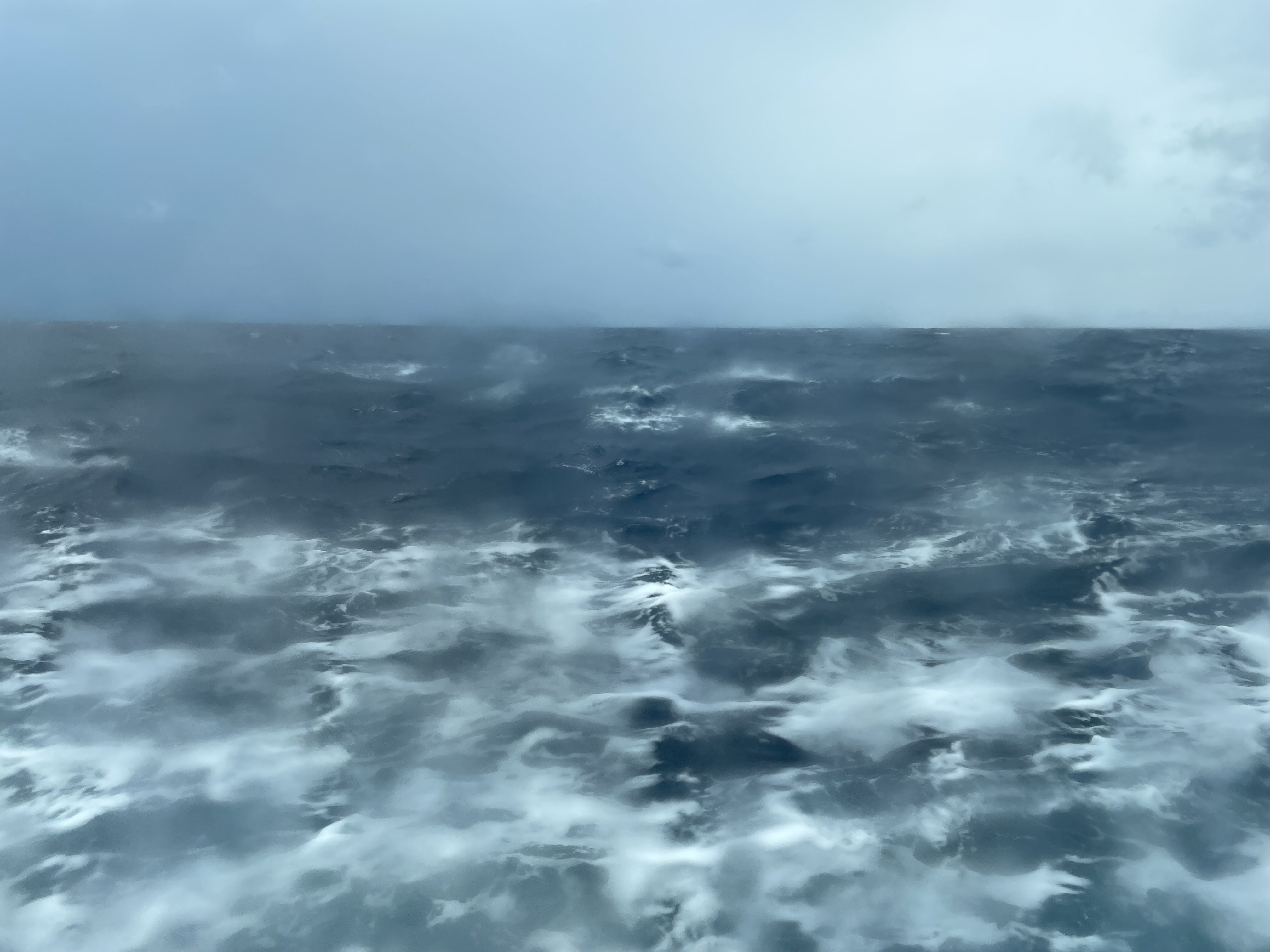 [The six to ten foot waves of the Adriatic Sea taken through the sea-splashed window of our stateroom aboard the Windstar’s “WindSurf”. Photo is mine]