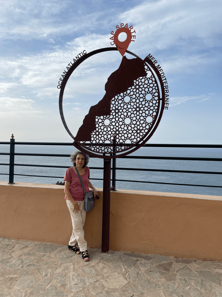 [Mariam at the view point of the place where the Atlantic meets the Mediterranean. Tangier, Morocco. Photo is mine.]
