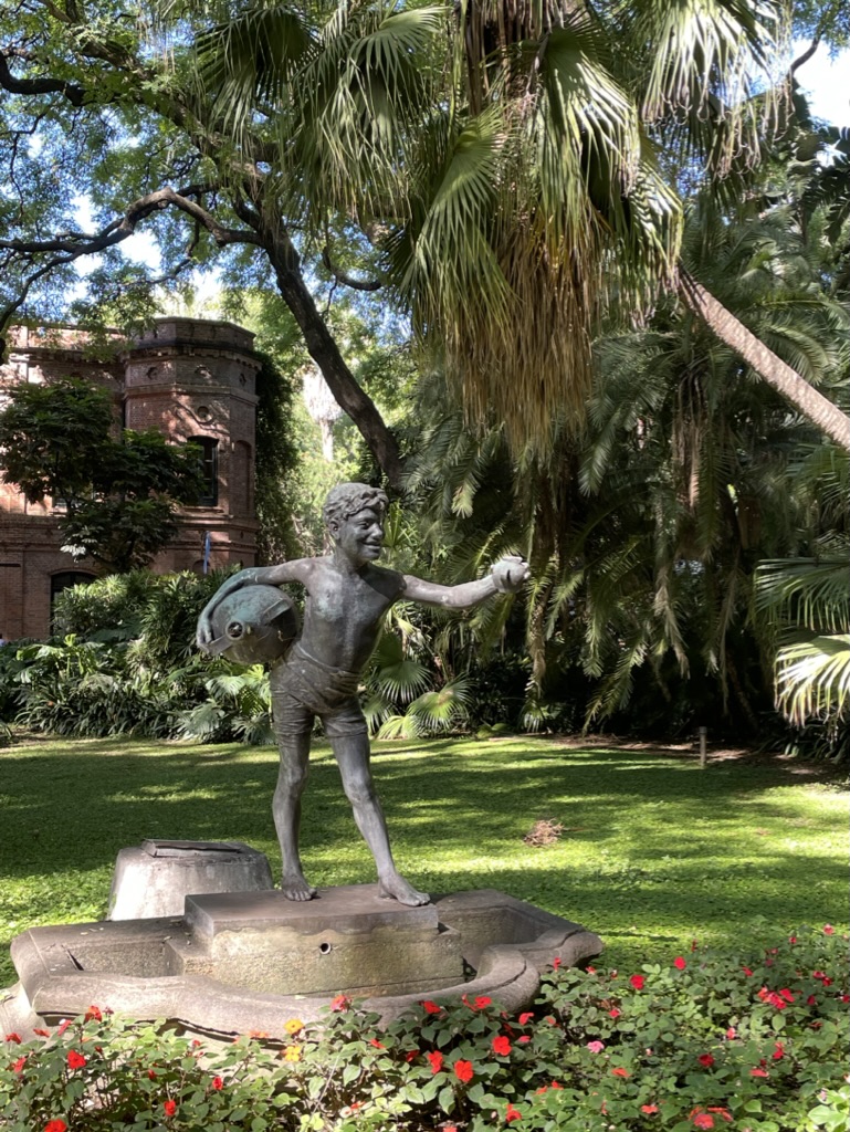 [Yes, I’m thirsty. A statue greets the park visitors, offering a drink. Photo is mine]