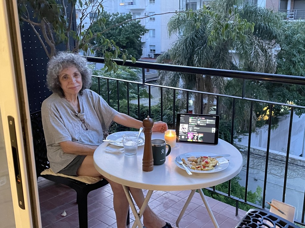 A day later, an evening later, Mariam and I enjoy a dinner on our balcony. A single candle flickers and my iPad is playing Sincerely by the McGuire Sisters. A quarter moon hangs over the apartment buildings to my right, out of view.