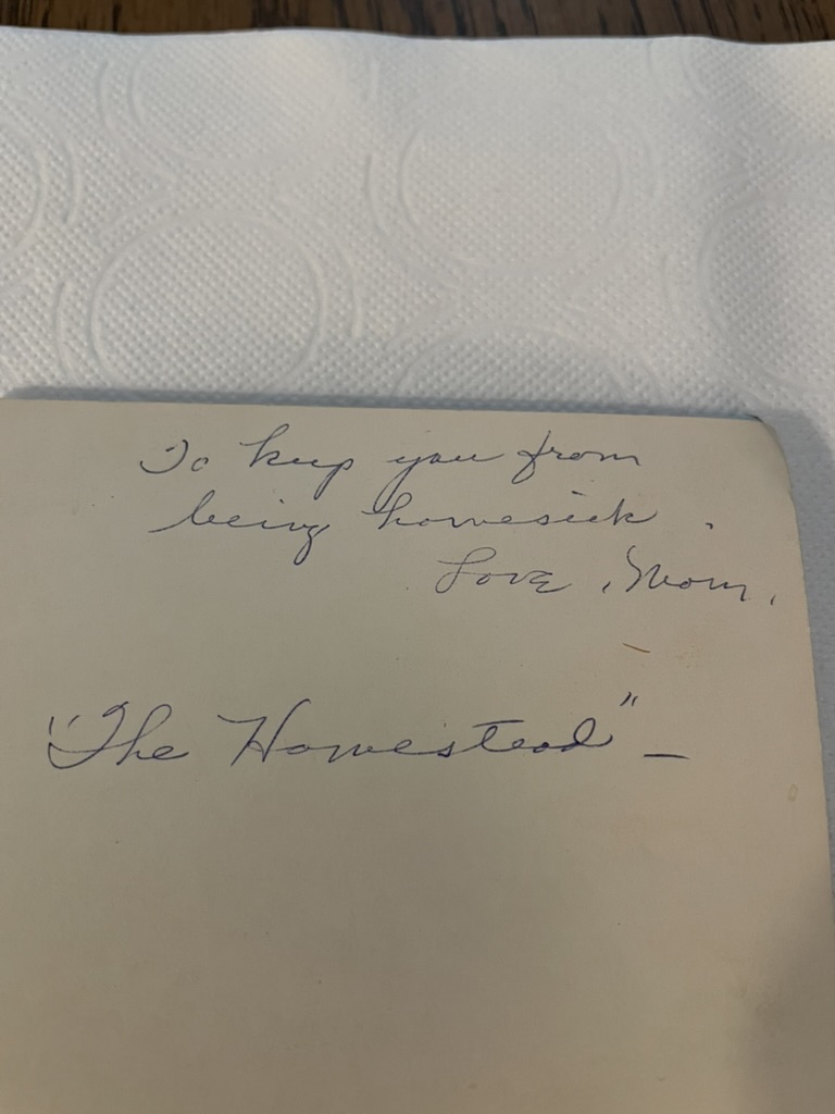 To keep me from being homesick…it was almost laughable. Almost a joke. Of course I was homesick. No photo was going to keep me from feeling so cut off from home, friends, family, and the house, as I was in the mid-sixties.