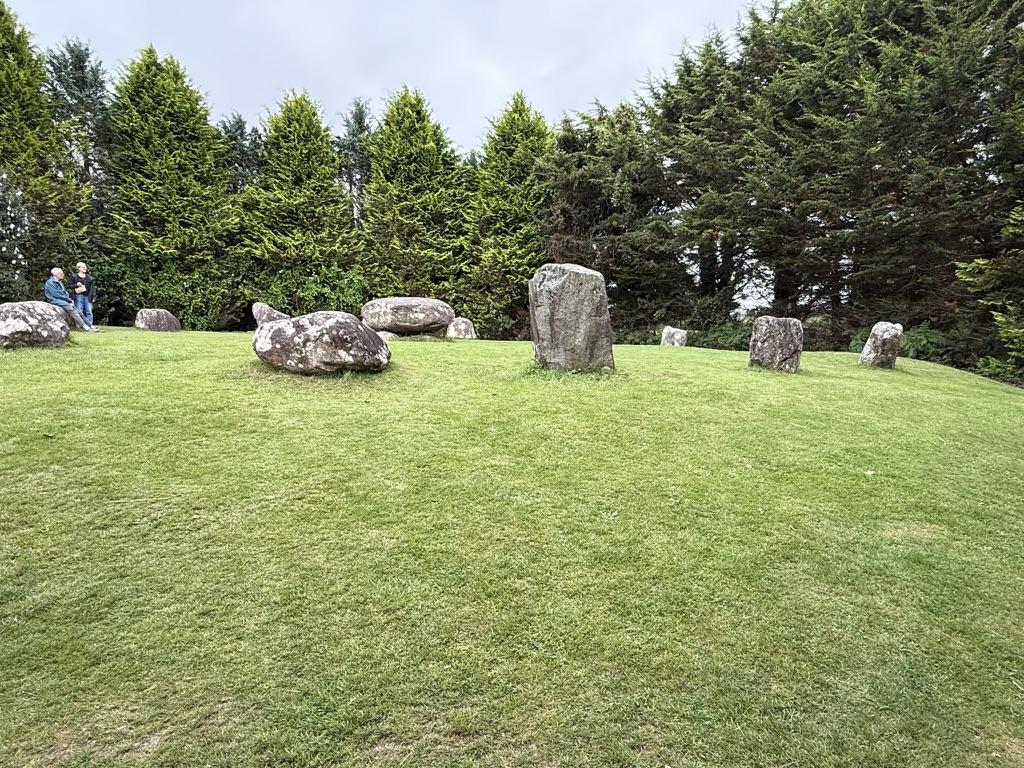 A few steps away, partly hidden by a crescent of trees was a stone circle. Fifteen stones, placed in a nearly perfect circle and enclosing a boulder dolman which is considered quite rare.