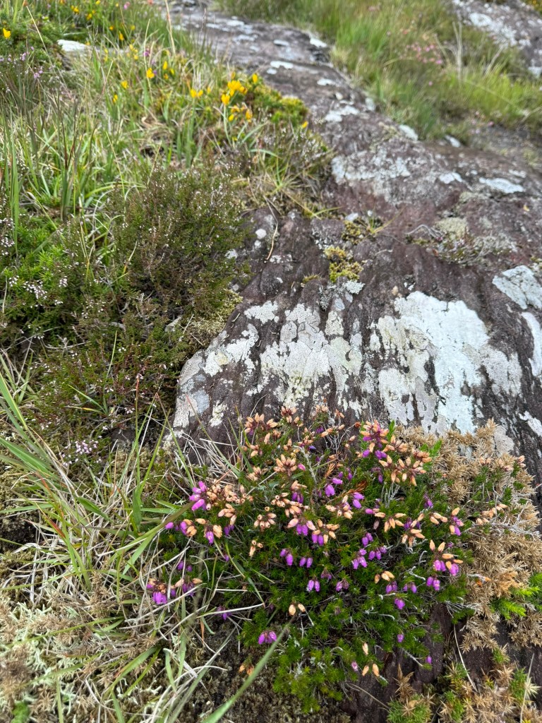 By mid-afternoon,I had spent more time than I wanted behind the wheel. I need out of the car. I needed air. Patiently I waited for a proper lay-by. I pulled over and walked up a short distance. It was quiet. I felt strong in my legs, like decades had fallen away from my muscles. It was peaceful. I sat on a rock and leaned over. There was a world of life all around me. I was sitting on living organisms. I looked deeper into the moss and wild flowers.