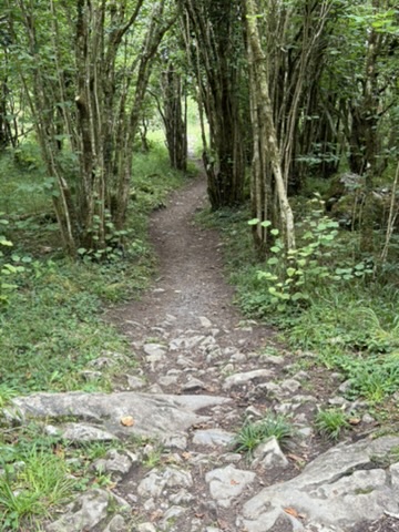 [Some of our hike was under the trees and in the welcome shade. Photo is mine.]
