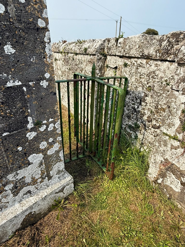[A very creaky gate leading into an old cemetery. Photo is mine.]