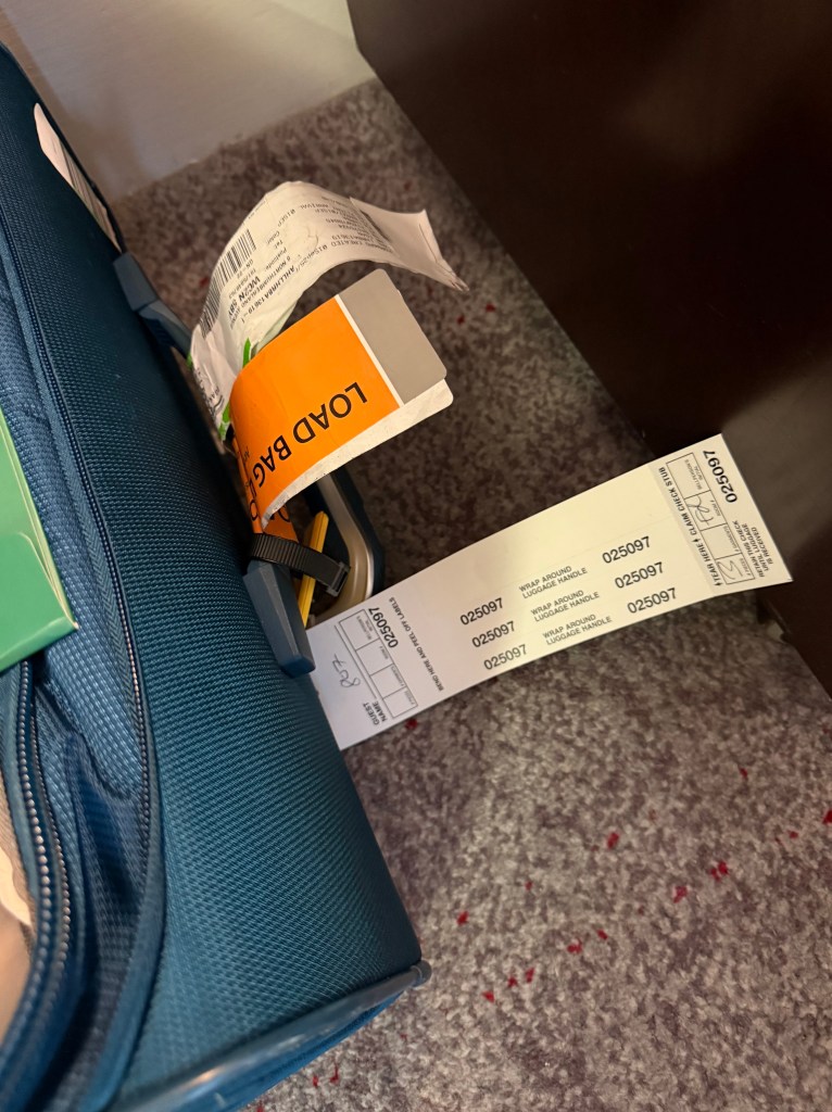 This morning, 2 September, I slept until late morning. Mariam had received a text indicating that our luggage was in London but the deliveries (of all the ‘lost baggage’, and I understand that we weren’t the only ones whose bags were left on the tarmac in Dublin) would not begin until 2 PM. Whoa. Another day without our stuff? But, then the hotel phone rang. I picked it up.
