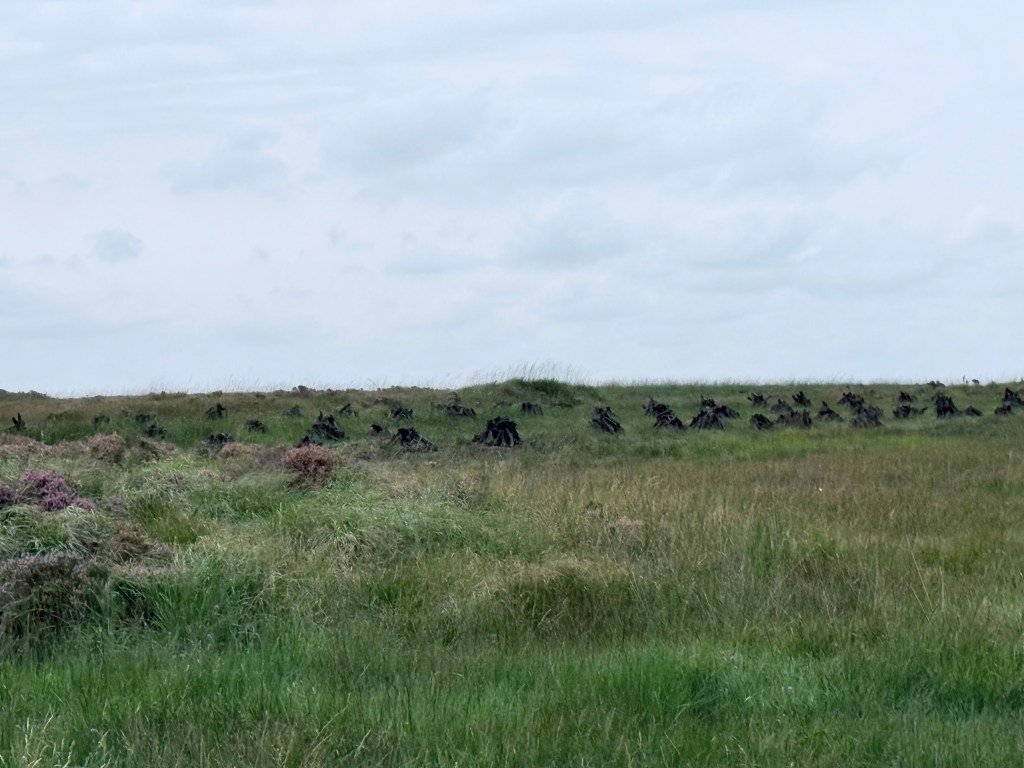 [Mounds of drying peat alongside a trench (not visible). This is not the place where it happened. Photo is mine.]